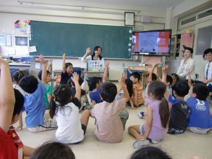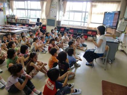 1年生の教室に来て「世田谷の民話」を