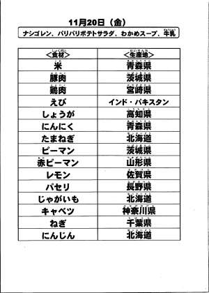 給食食材の産地情報