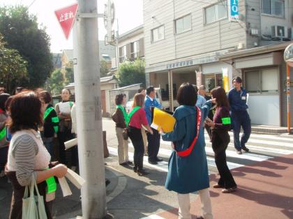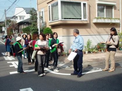 午前中は玉川警察署・世田谷区役所、午後は目黒区役所の交通・道路管理関係の方々と一緒に保護者のみなさんからいただいたアンケートをもとに、子ども達の登下校の安全上、気になっている場所を中心に、点検をしたり、改善のお願いをしたりしました。