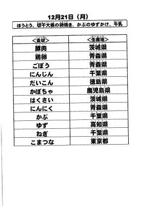 給食食材の産地情報