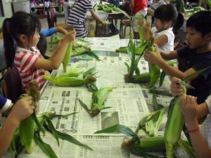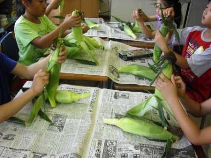 2年生の中には、初めてトウモロコシの皮をむいた子もいました。