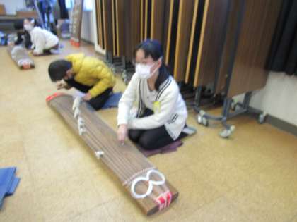 1月19日(火)の音楽の授業で、5年生がお琴の体験をしました。