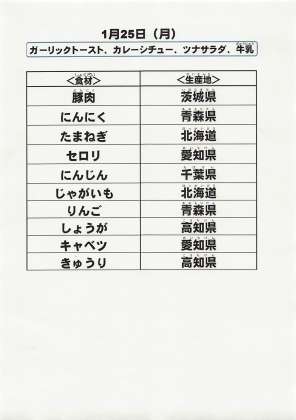 給食食材の産地情報