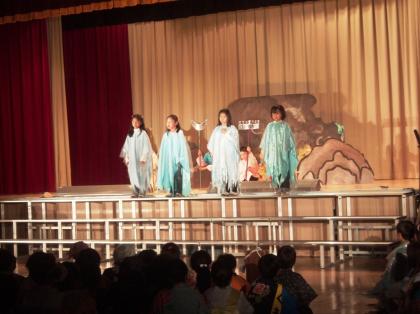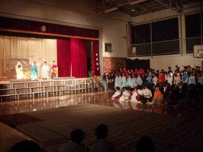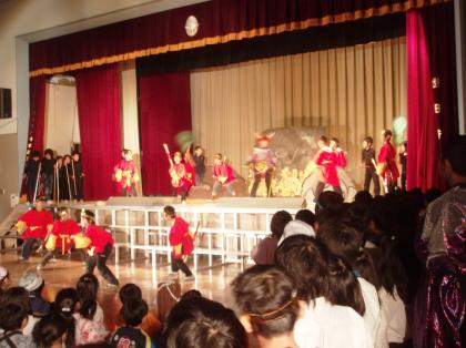 3年生の演目はみなさんおなじみの孫悟空です。赤い衣装を身につけた孫悟空がとても元気いっぱいの3年生を象徴しているようでした。一人一人がしっかりと声を出している姿を見ると、しっかりと成長していることがうかがえました。
