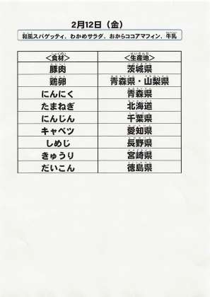 給食食材の産地情報