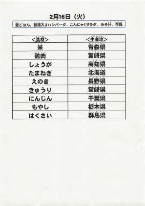 給食食材の産地情報