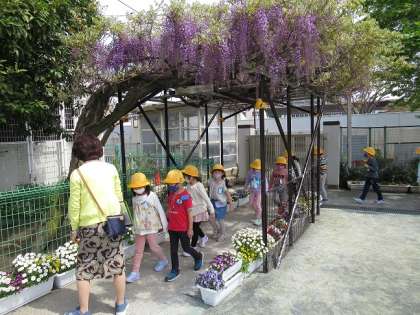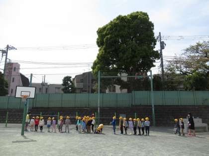 今日は、1年生が校庭を見学していました。きちんと並んで、どんな遊び道具があるのか、どんな決まりがあるのか、先生の話を聞いていました。来週の「一年生をむかえる会」が終わると、休み時間に校庭で遊べるようになります。