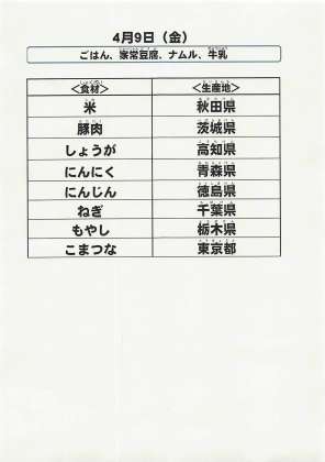 給食食材の産地情報