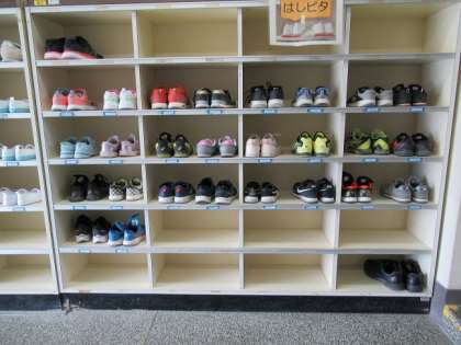 今日も1年生は、校庭で活動することがありました。そこで、靴箱の様子。靴を履き替えた後は、きちんとそろえて靴をしまいます。すばらしい。