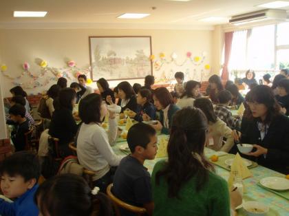 ランチルームでの食事は、普段ほとんどないため、3年生の子どもたちも、やや興奮気味でしたが、楽しいひとときを過ごしました。