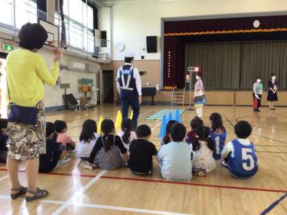 4月21日(水)体育館で1・2年生が交通安全教室を実施しました。