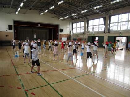 密集しないように、屋外や換気のいい体育館を使って、どの学年も「開校70周年記念運動会」の練習に取り組んでいます。
