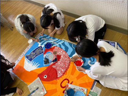 ソーラン節のイメージに合うデザインをみんなで考えて作りました。