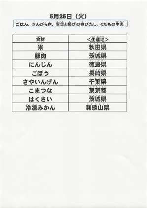 給食食材の産地情報
