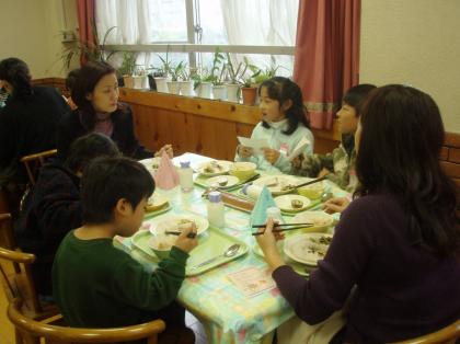 先週の3年1組に引き続き、今日は3年2組でふれあい給食会を実施しました。20名ほどの3年2組の保護者の方が足を運んでくださいました。会食の後半は、子ども達のクイズやリコーダー演奏などの出し物で楽しみました。
