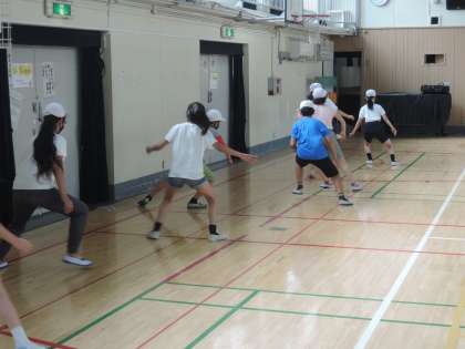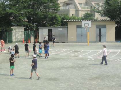 校庭ではソフトボール投げ、体育館では反復横飛び、長座体前屈、上体起こしとローテーションで行いました。