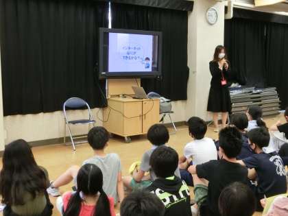 本日、株式会社教育ネットより講師の方をお招きし、6年生を対象とした「ネットリテラシー醸成講座」を行いました。
