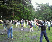 森の中での朝会、気持ちのよい朝です。全員元気です。