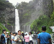 華厳滝に到着しました。マイナスイオンたっぷり。水量たっぷりです。