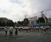 今日の体育朝会は長縄跳びです。低学年は大波小波、中高学年は8の字跳びに挑戦しました。
