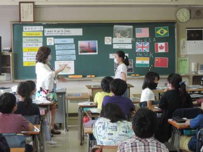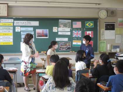 英語教育推進アドバイザーのエミリー先生が、学校支援で訪問してくださいました。本日は3年2組と5年2組で授業参観と授業を行ってくださいました。