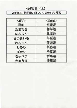 給食食材の産地情報