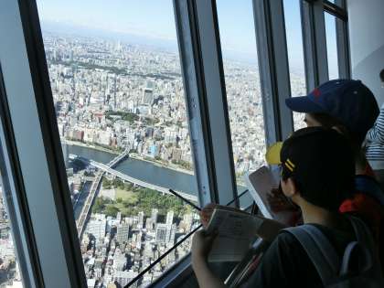 さらに、高さ450mの展望回廊にも登り、東京湾や東京都庁、さらに富士山も見ることができ、子どもたちは非常に興奮した様子でした。