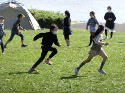 その後、葛西臨海公園に移動し、お弁当を食べ、広場で元気に走り回っていました。
