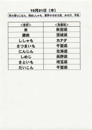 給食食材の産地情報