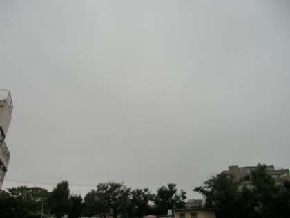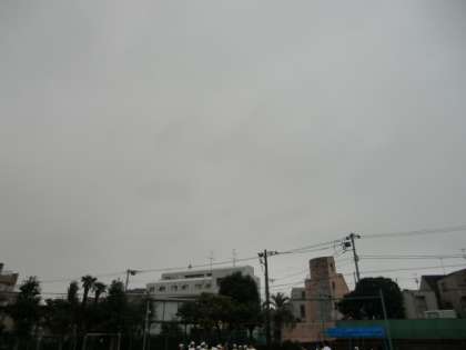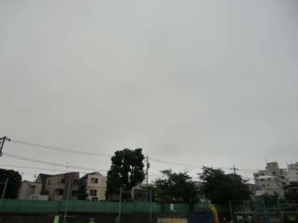 朝から降ったり止んだりの天気です。空一面の雲です。