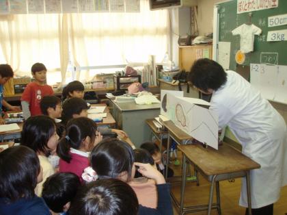 3年1組で、保健学習をやりました。今日は担任の中村先生ではなく、養護の福岡先生の授業でした。今日の学習の内容は、お母さんが妊娠をして、出産するまでの話です。授業の中には、大きくて重い荷物を前にかかえて、妊婦となったときの大変さを苦労を体験したり、保護者の皆さんからの体験の話を交えたりして行いました。