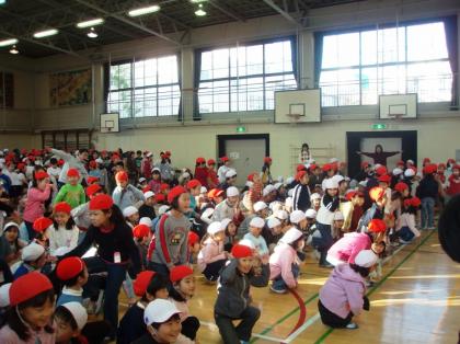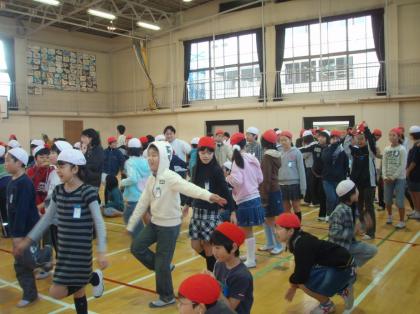 今日のゲーム集会は「つる・かめ・かかし」というゲームでした。つる・かめ・かかしのポーズを、集会委員の合図にあわせて、ジャンケンのようにやります。同じかどうかで勝ち負けも決まります。子ども達にとってはなじみのあるゲームで、ルールの説明を詳しくしなくてもすぐできます。