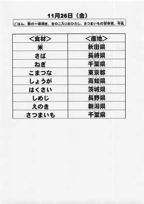 給食食材の産地情報
