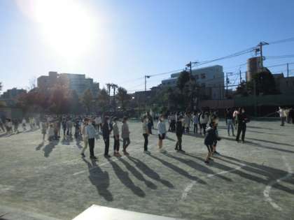この時期の体育朝会は例年、縄跳びを楽しみます。今日は、クラスごとに長い縄を回して、みんなで跳びました。本格的な冬の訪れを感じながら、体を動かして元気に冬をのりきってほしいと思います。