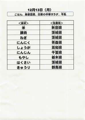 給食食材の産地情報