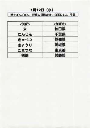 給食食材の産地情報