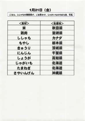 給食食材の産地情報