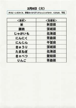 給食食材の産地情報