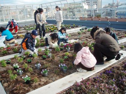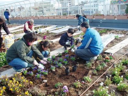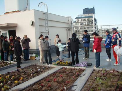 12日の予定でしたが、雨のため13日延期して実施しました。太陽も時折顔をのぞかせましたが、やはり冬の屋上は大変寒く、みなさんしっかり防寒して参加しました。