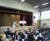 今日の児童集会は、ザ☆まつりのスタンプラリー抽選会です。