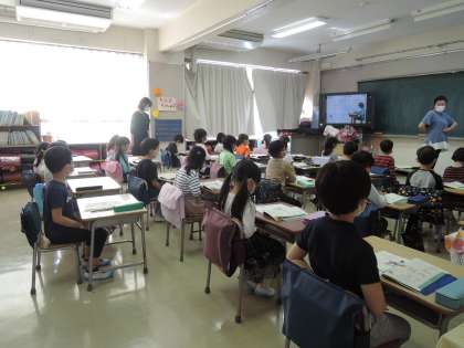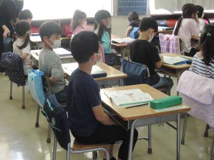 今週は、鉛筆の持ち方や文字の書き方、丁寧に文字を書くことなどを意識する、ペンシルウィークです。一年生は国語の教科書に合わせて、一つ一つ丁寧に確認をしています。「足はぺったん、背中はピン!」素敵な姿勢でがんばっています。