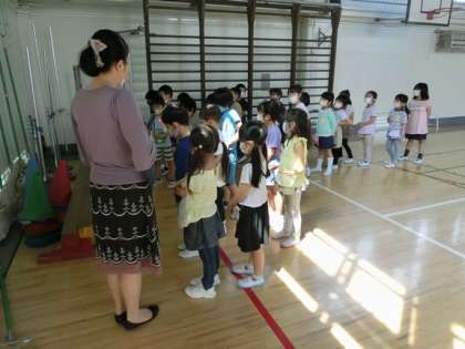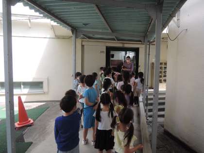 一年生は学校たんけんを担任の先生と行っています。どこにどのようなお部屋があるのか、そこではどのようなことをするのかを教えてもらっています。プールの説明では目を輝かせて聞いていました。「夏のプールが楽しみ!」と話してくれる子も。一つ一つが新しい発見です。