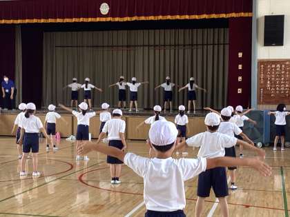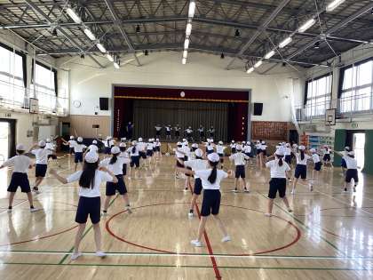 4年生のダンスでは、曲の速いテンポに合わせて体を大きく動かしたり難しいステップを全員で揃えられるように練習したりしています。
