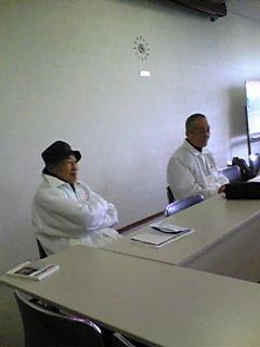 左の写真は石井会長が、子どもたちの対戦を見ている様子です。