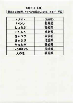 給食食材の産地情報