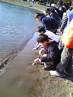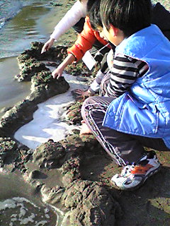 レインボーブリッジをバスで渡り(最初の予定では、遊歩道を歩いて渡ることになっていましたが強風のため変更)お台場海浜公園へいきました。砂浜で鬼ごっこをしたり、浜辺で島を作ったりして楽しいひとときを過ごしました。