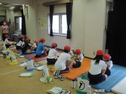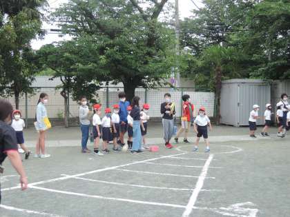 今日の体力調査は1年生は6年生と2年生は5年生とペアを組み、低中学年が行いました。計測場所までの案内ややり方を高学年が教えてくれました。初めての経験だった1年生は6年生のお手本を見ながら、ボールを投げたり、上体起こしを行ったり、無事に終えることができました。高学年のお兄さん、お姉さん、今日も活躍しました。