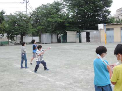 理科の学習で「空気と水」の性質について学んできました。「水は全然とばない!」「空気と水を半分半分にしたら少し飛びました!」今日は空気鉄砲に閉じ込められた空気が元にもどろうとする手ごたえを感じながら、学習の確かめを行いました。