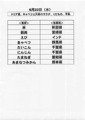 給食食材の産地情報