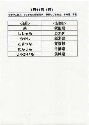 給食食材の産地情報